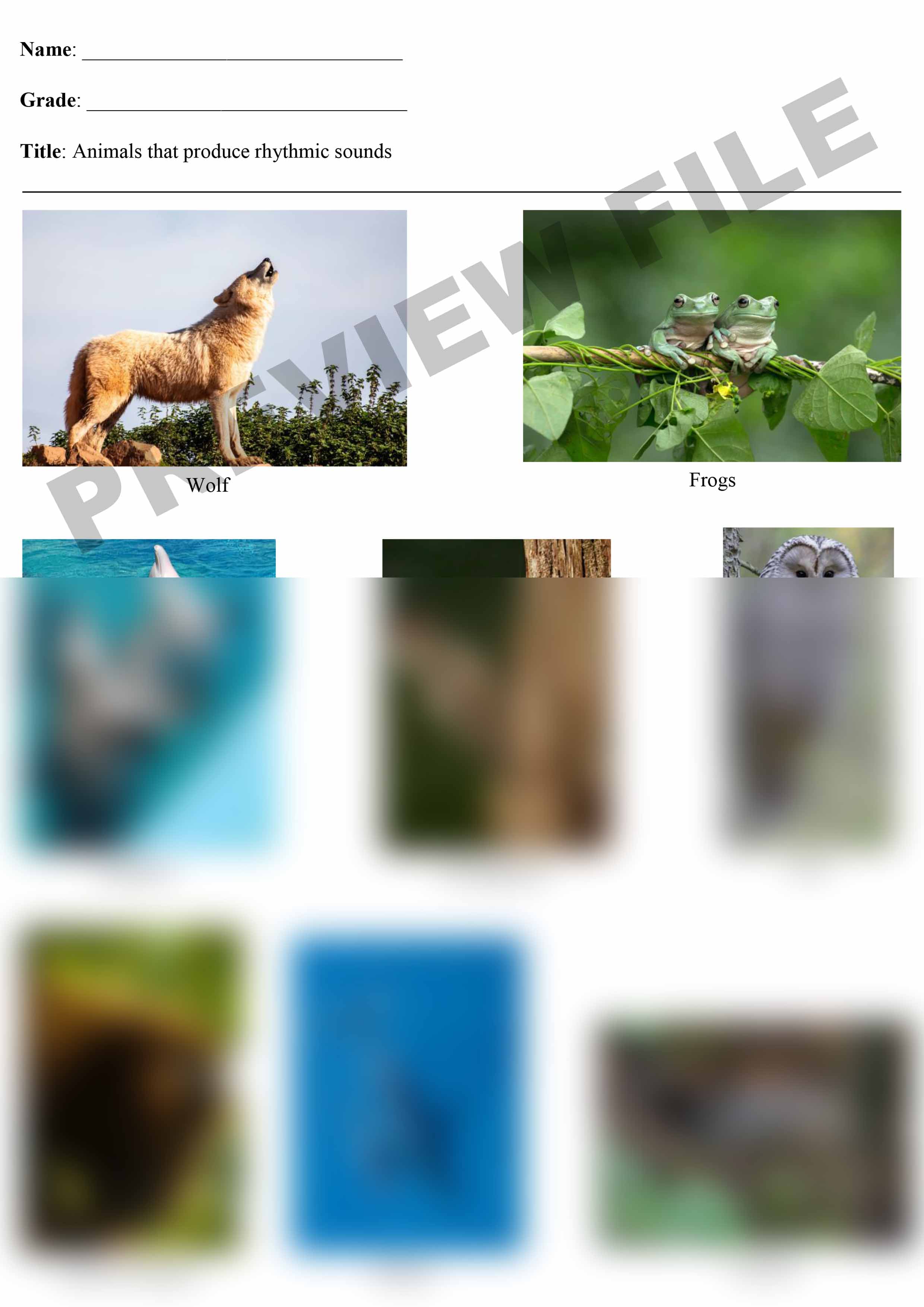 Complete File: Has 2 MS word files & 2 Print ready PDF files with a variety of pictures of Animals that produce rhythmic sounds