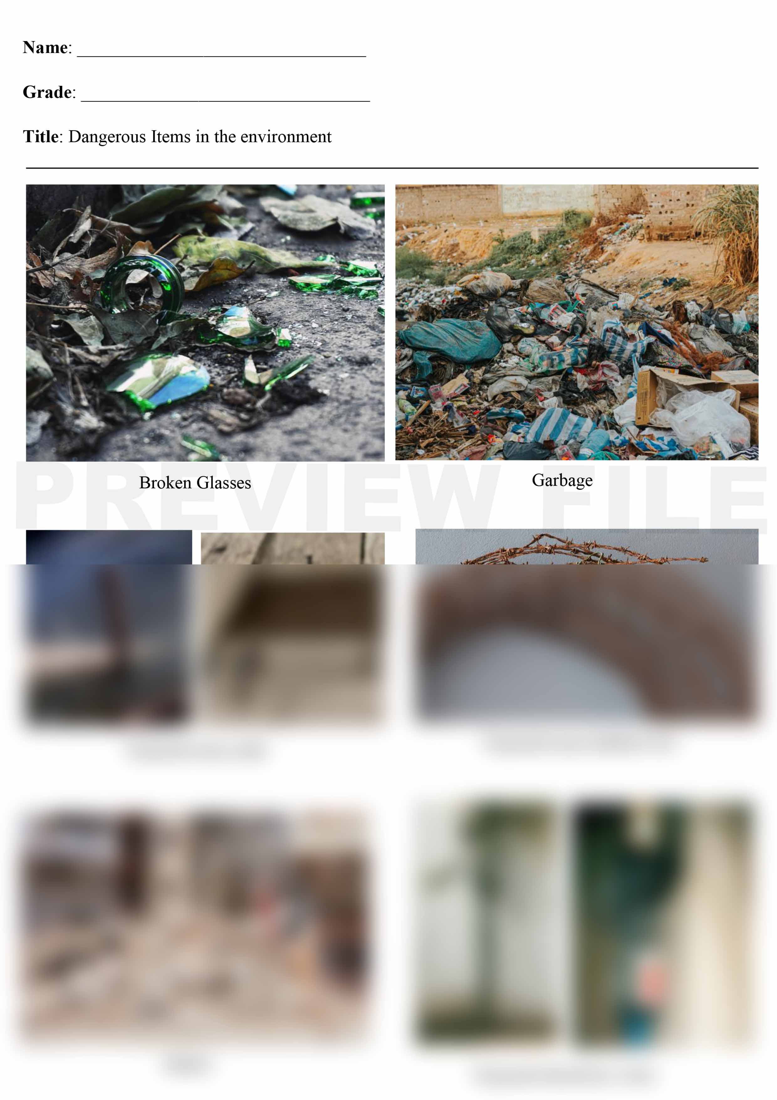 Complete File: Has 2 MS word files & 2 Print ready PDF files with a variety of pictures of Dangerous items in the environment