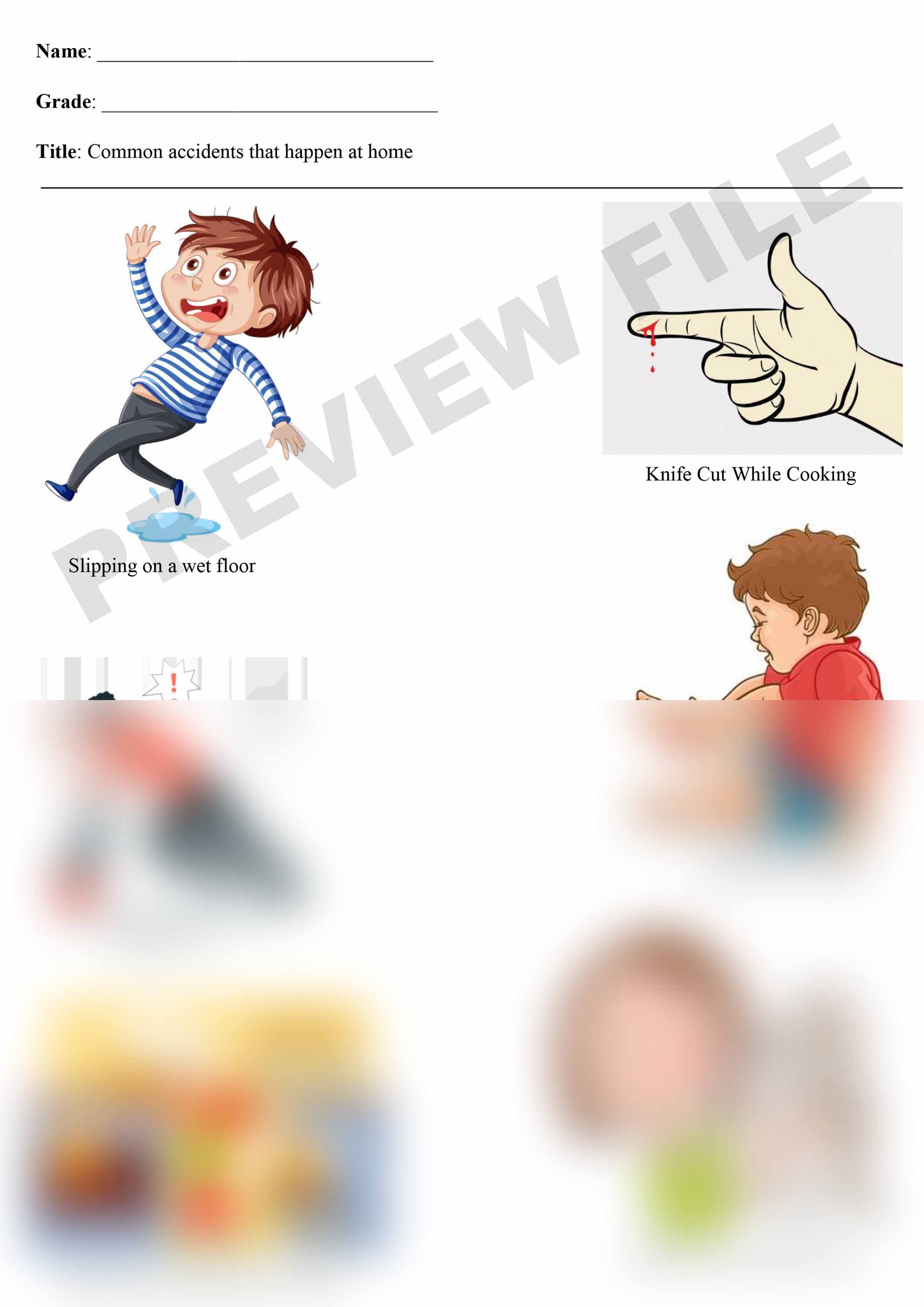 Complete File: Has 2 MS word files & 2 Print ready PDF files with a variety of pictures of Common accidents that happen at home
