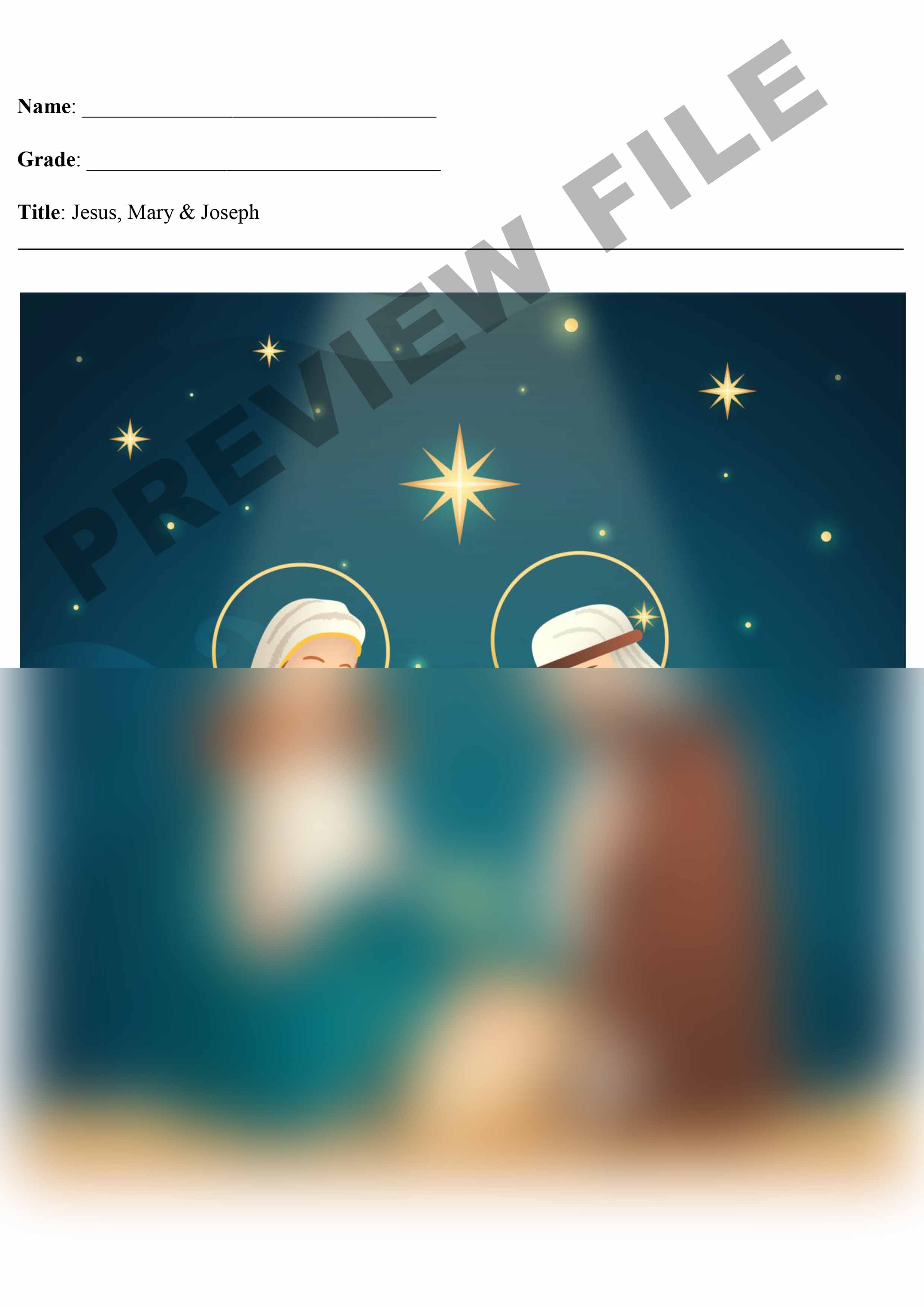 Complete File: Has 2 MS word files & 2 Print ready PDF files with a variety of pictures of Jesus, Mary and Joseph