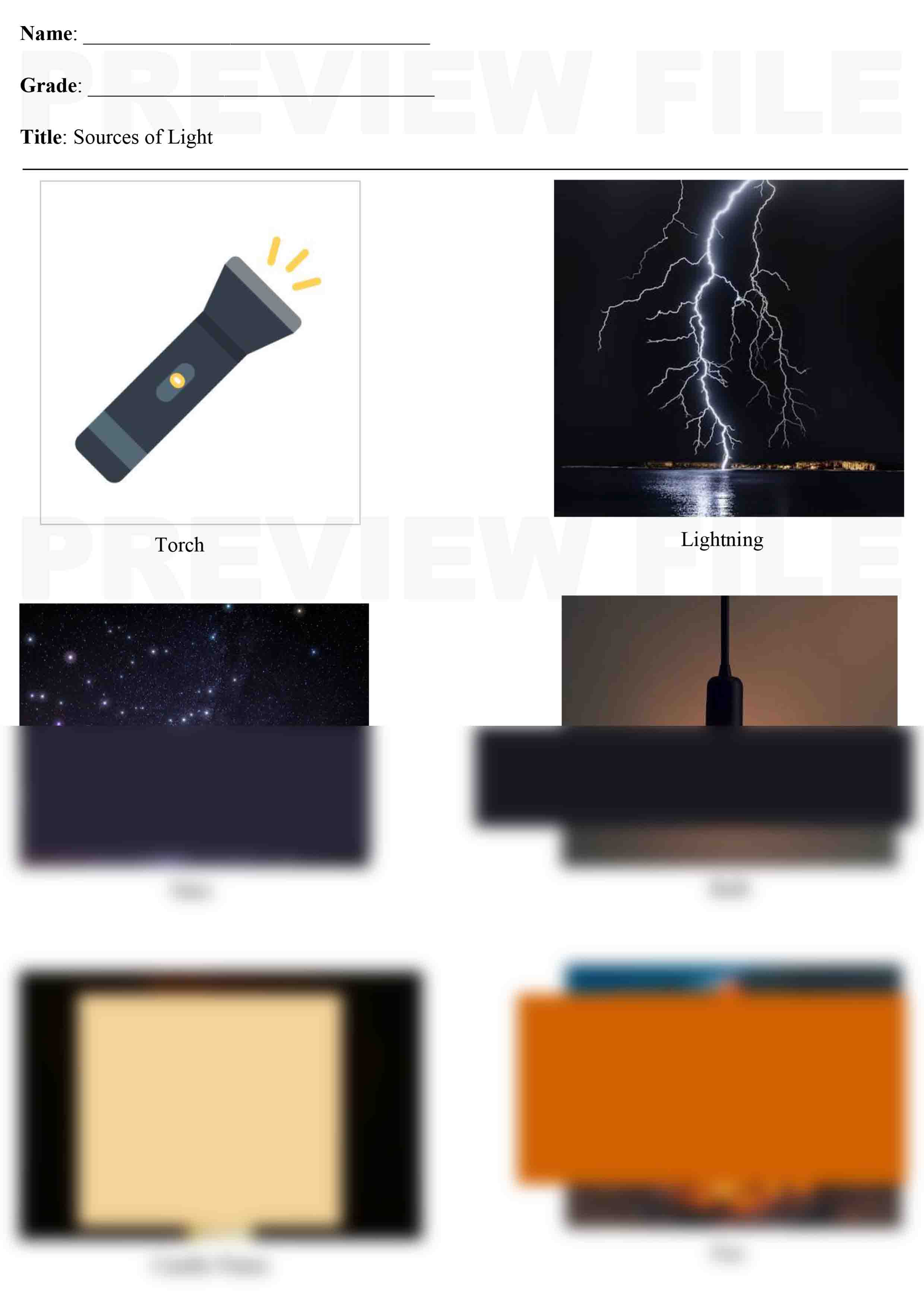 Complete File: Has 2 MS word files & 2 Print ready PDF files with a variety of pictures of Sources of light