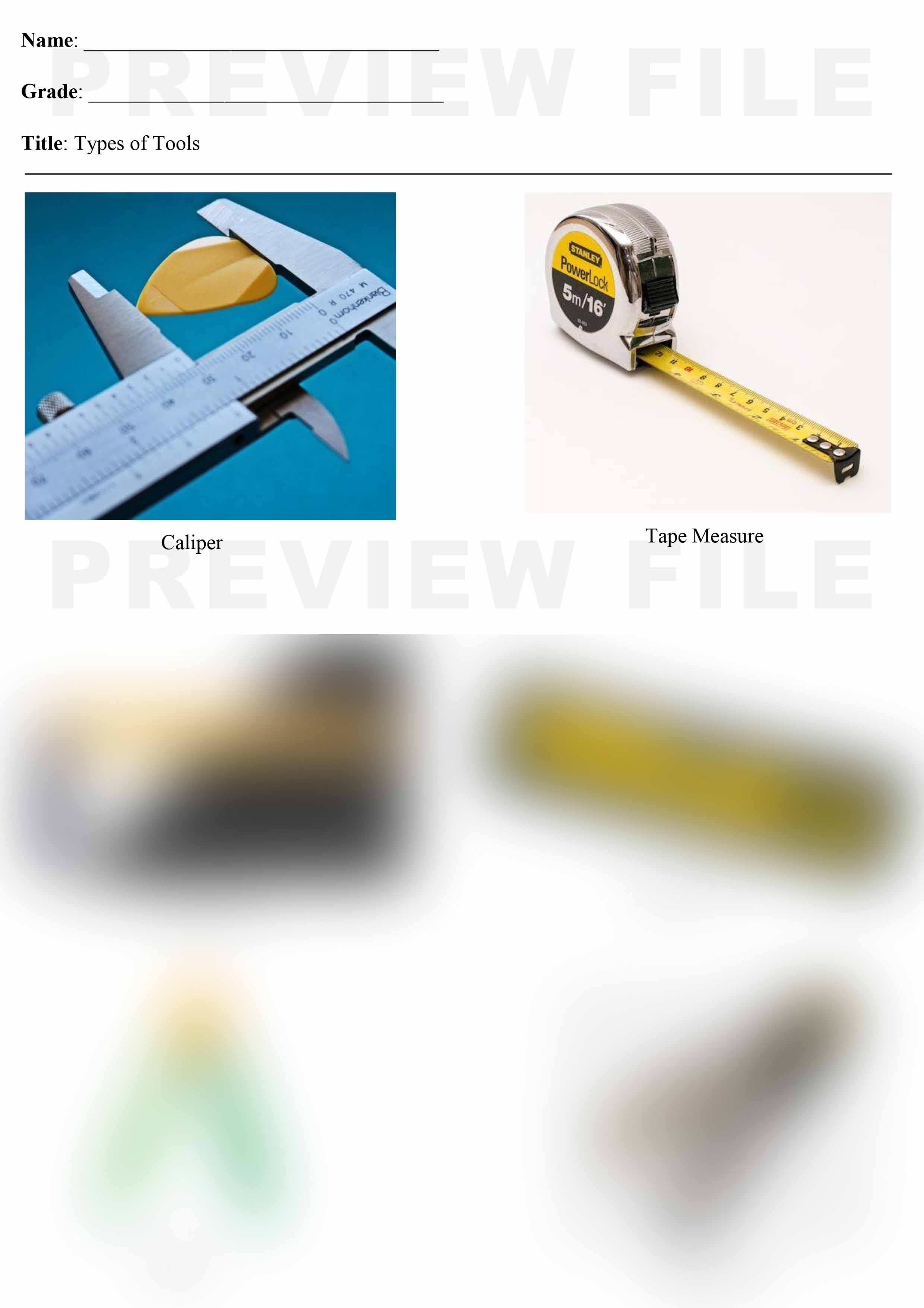 Complete File: Has 2 MS word files & 2 Print ready PDF files with a variety of pictures of Types of tools