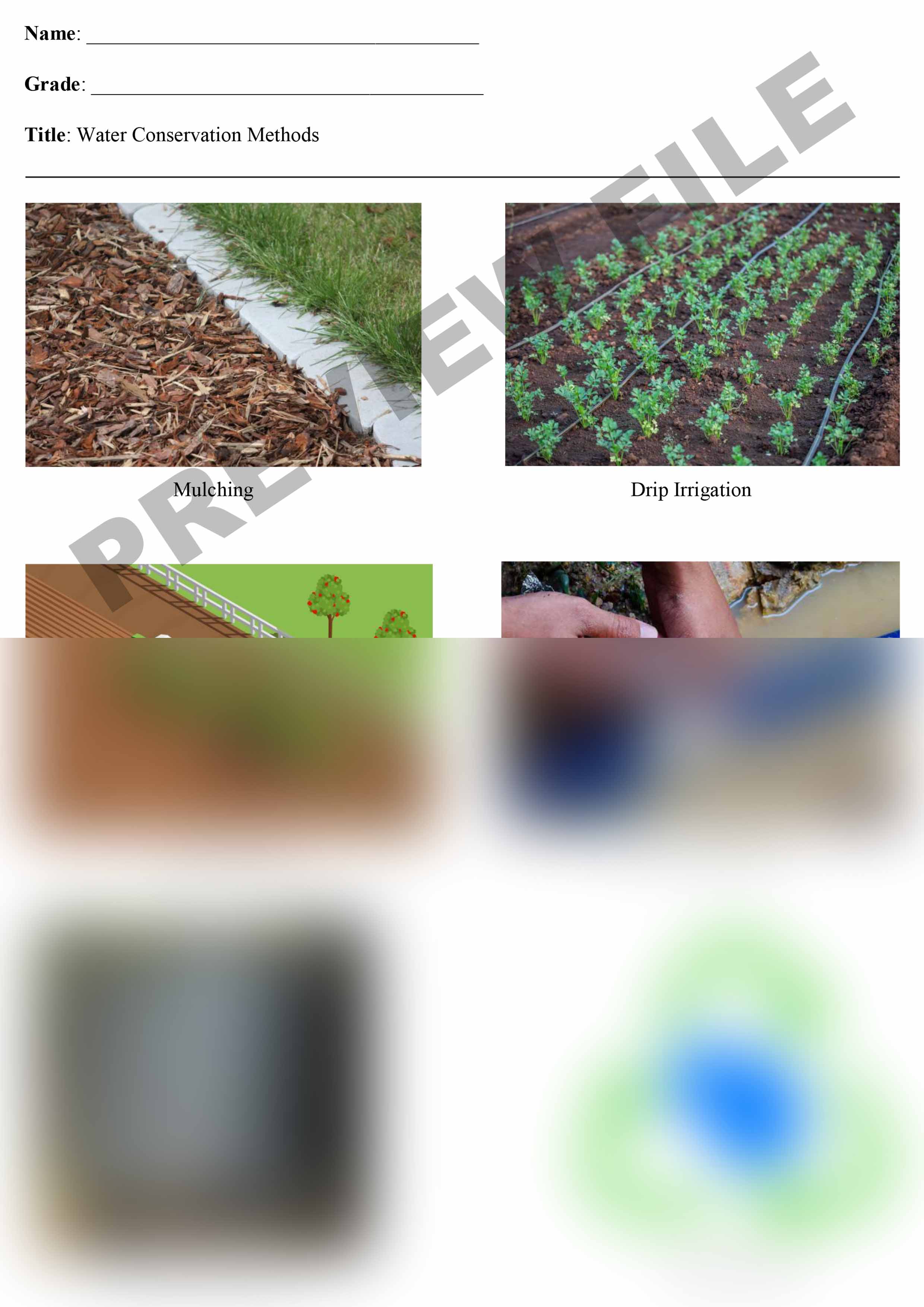 Complete File: Has 2 MS word files & 2 Print ready PDF files with a variety of pictures of Water conservation methods